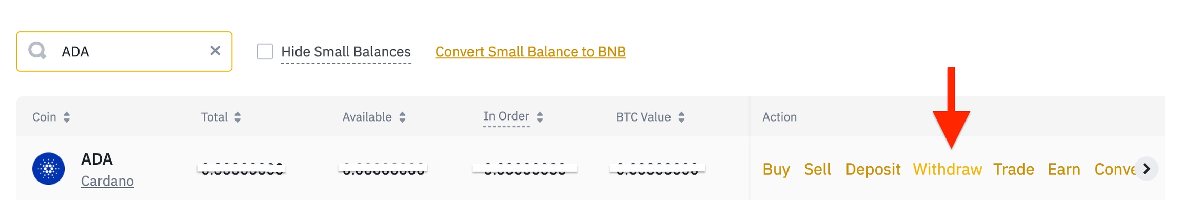 On this dashboard, you’ll see all of your available cryptocurrency balances, including the ADA that you just bought. From here, you need to select Withdraw to send the funds to your Eternl wallet we previously set up.